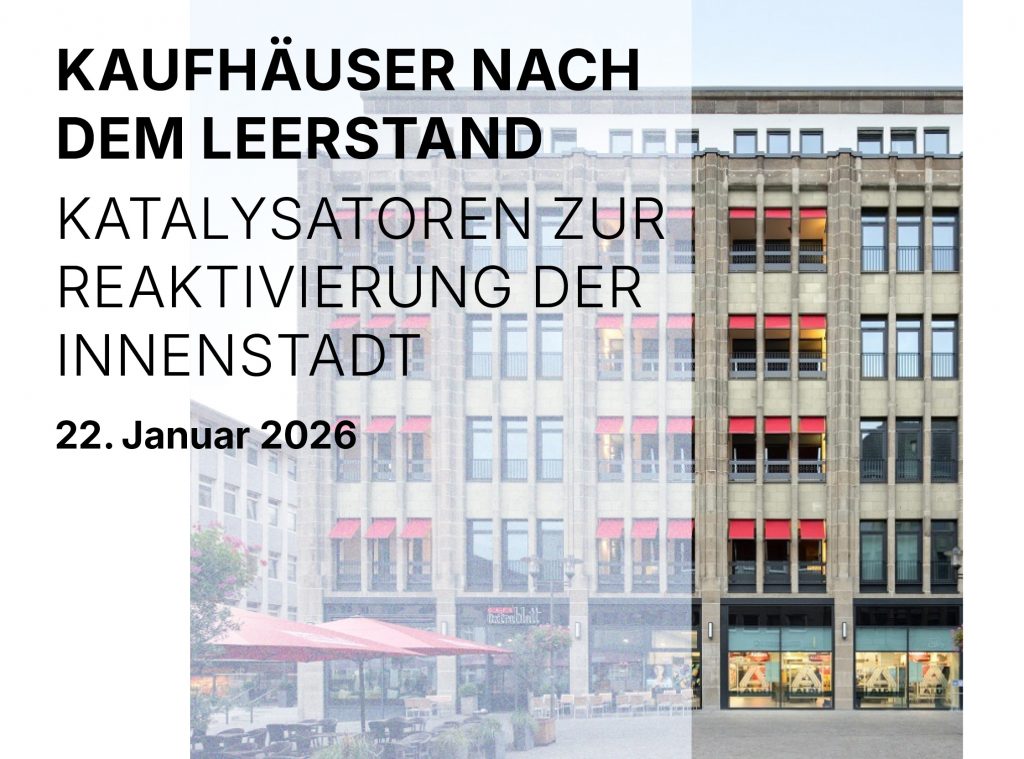 Jetzt anmelden und Rabatt sichern! Online-Kurs „Kaufhäuser nach dem Leerstand“ Donnerstag, 22 Januar 2026, von 16-18 Uhr Jetzt HIER anmelden und 50% sparen! Rabattcode: 944G-J84S Die Innenstädte stehen vor großen Herausforderungen: Bedarf und Nachfrage nach Einzelhandelsflächen sinken und großflächige Leerstände breiten sich zunehmend aus. Beschleunigt wird dieser Prozess durch aktuelle Schließungen großer Warenhausketten in klein-…
