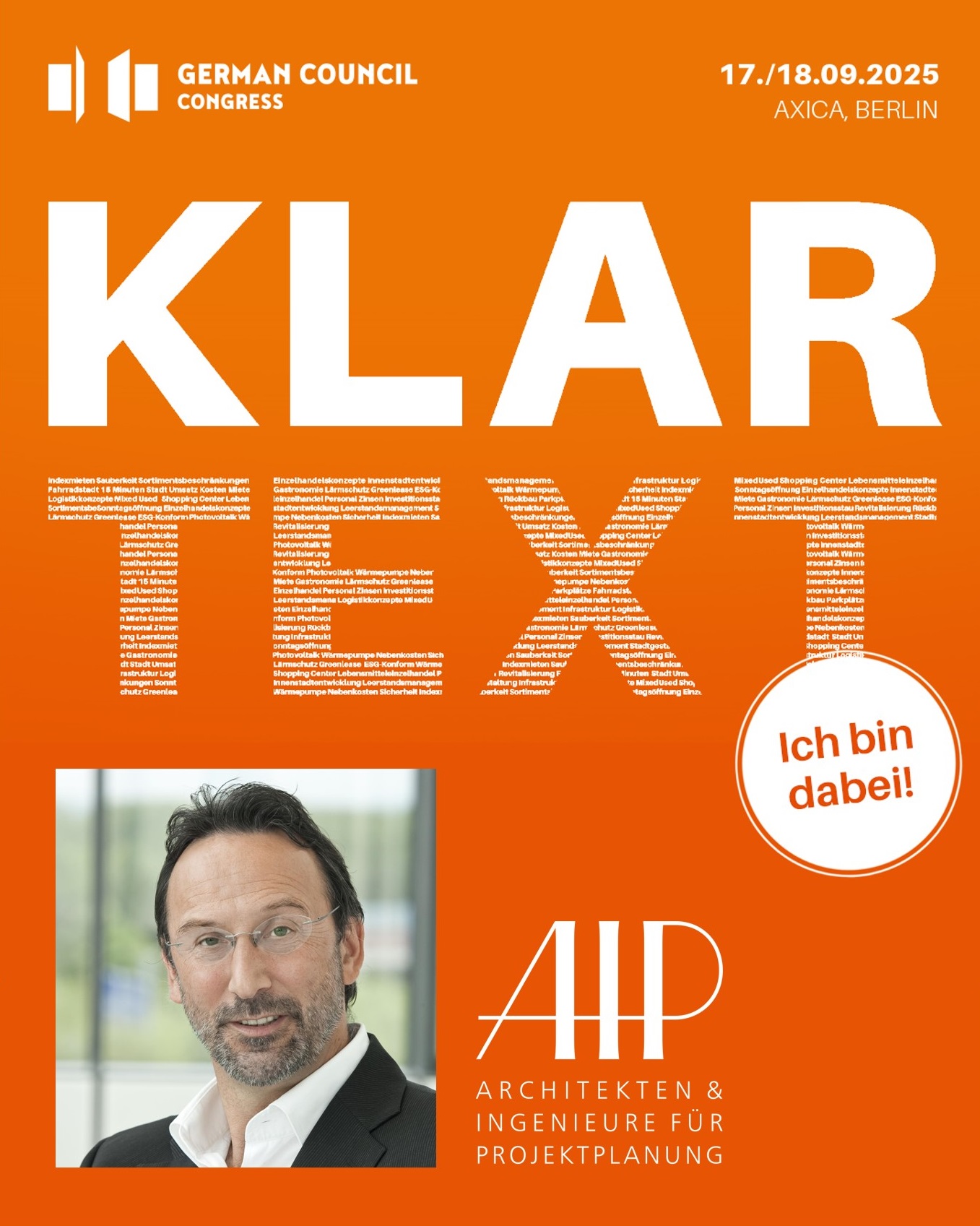 German Council Kongress 17./18.09.2025 in Berlin Ich bin dabei, sehen wir uns?AIP Planungs GmbH, Jens Siegfried, Jens.Siegfried@aip-architects.de, Tel. 0172 6288860